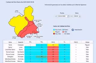 La Dirección General de Medio Ambiente y Mar Menor de la Consejería de Agua, Agricultura, Ganadería, Pesca y Medio Ambiente de la Región de Murcia ha comunicado al Ayuntamiento de Cartagena la bajada a nivel 2 del aviso por partículas suspensión (PM10) en el municipio de Cartagena, como consecuencia del descenso de las mediciones registradas ayer en las estaciones del Valle de Escombreras, La Aljorra, Alumbres y Santa Lucía.