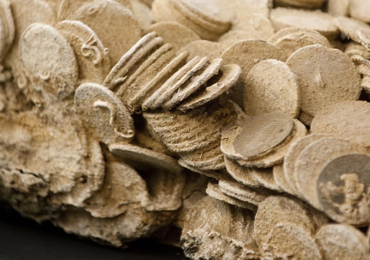 Algunas de las monedas que forman parte del tesoro de la fragata Nuestra Señora de las Mercedes, que han sido cedidas temporalmente por el Museo Nacional de Arqueología Subacuática de Cartagena (Arqua), se pueden ver durante estos días en el MAM dentro de la exposición 'Tesoros. Material, ley y forma', que ya han visitado más de 6.500 personas.