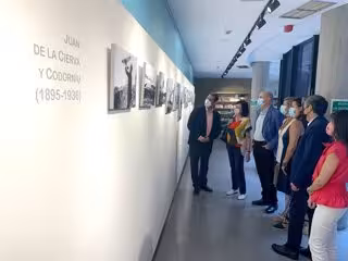 El consejero Díez de Revenga y la familia de Juan de la Cierva, en la exposición fotográfica del inventor inaugurada esta semana - CARM