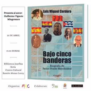 La biblioteca Josefina Soria del Centro Cultural Ramón Alonso Luzzy acogerá este lunes, 25 de abril, a las 19.30 horas, la presentación de 'Bajo cinco banderas: Biografía de Pedro Prado Mendizábal'. La actividad, incluida dentro de la programación de Cartagena Piensa, forma parte de las XI Jornadas de Memoria Histórica del municipio.