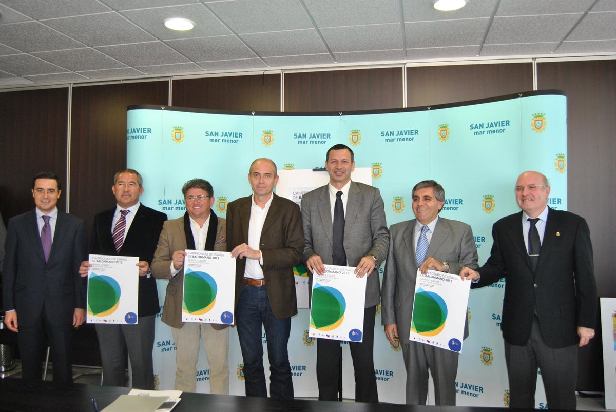 El alcalde de San Javier, Juan Martínez ejerció de anfitrión durante la presentación del Campeonato que tuvo lugar esta mañana en el ayuntamiento de San Javier con la asistencia del director general de Deportes, Antonio Peñalver, el jefe de Promoción Deportiva del Consejo Superior de Deportes, Juan Manuel Hueli, un representante de las federaciones regional y nacional de balonmano, Juan Francisco Cutillas, del alcalde de Los Alcázares, Anastasio Bastida y el primer teniente de Alcalde de San Pedro del Pinatar, Antonio García.