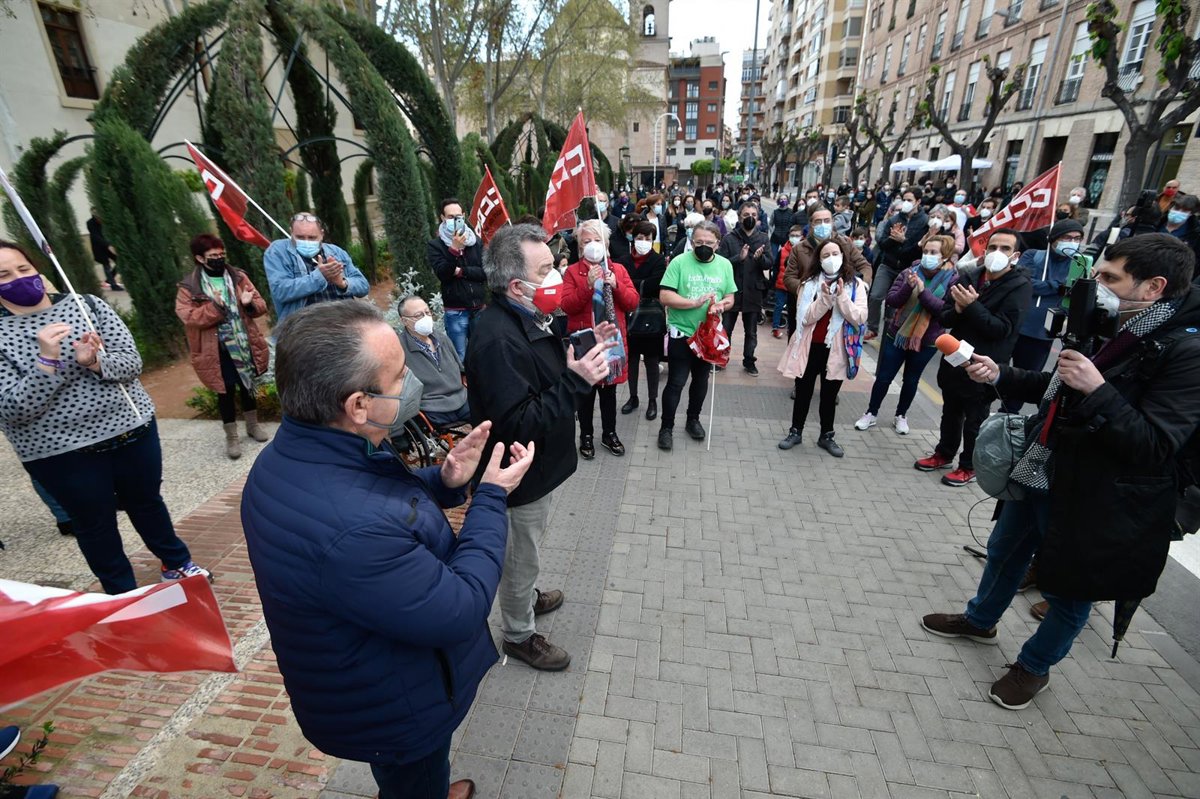 Protesta convocada por CCOO frente al Palacio de San Esteban para evitar que la Consejería de Educación y Cultura caiga en manos de Vox - JAVIER CARRIÓN