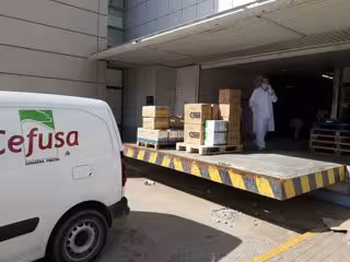 Imagen de entrega de material por parte de Cefusa como parte de la donación - GRUPO FUERTES