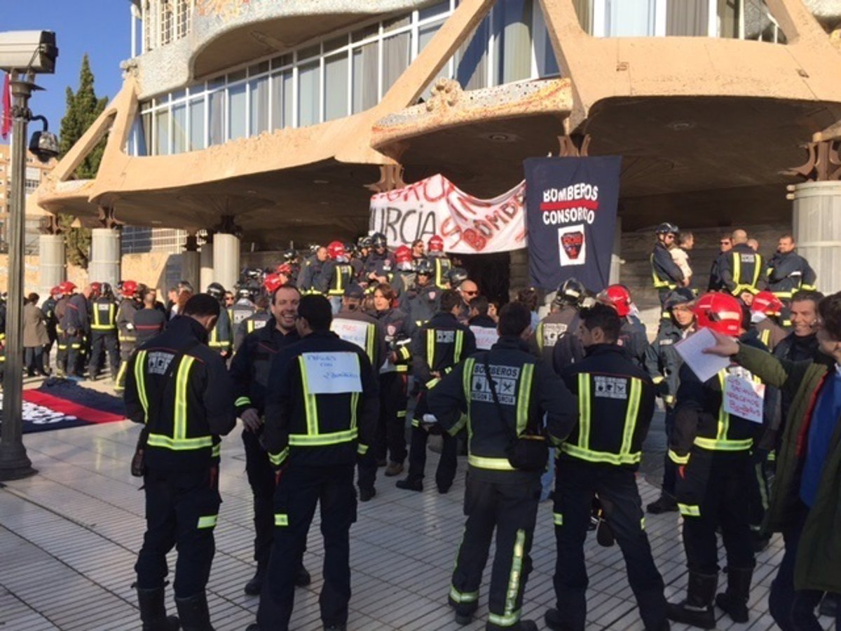 Un centenar de bomberos de los 15 parques del Consorcio de Extinción de Incendios y Salvamento de la Región se han manifestado ante la Asamblea Regional por la "falta" de efectivos en los parques regionales. Exigen al Gobierno regional que cubra las 47 plazas vacantes que han quedado tras la jubilación de algunos de sus compañeros.