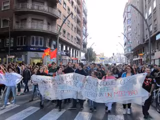 Los estudiantes marchaban tras una pancarta en la que se podía leer: 'El ser humano no es un objeto, y menos una mercancía. Donde sea siempre es una persona', y otro cartel que indicaba 'Si nos cierran puertas, romperemos ventanas'.