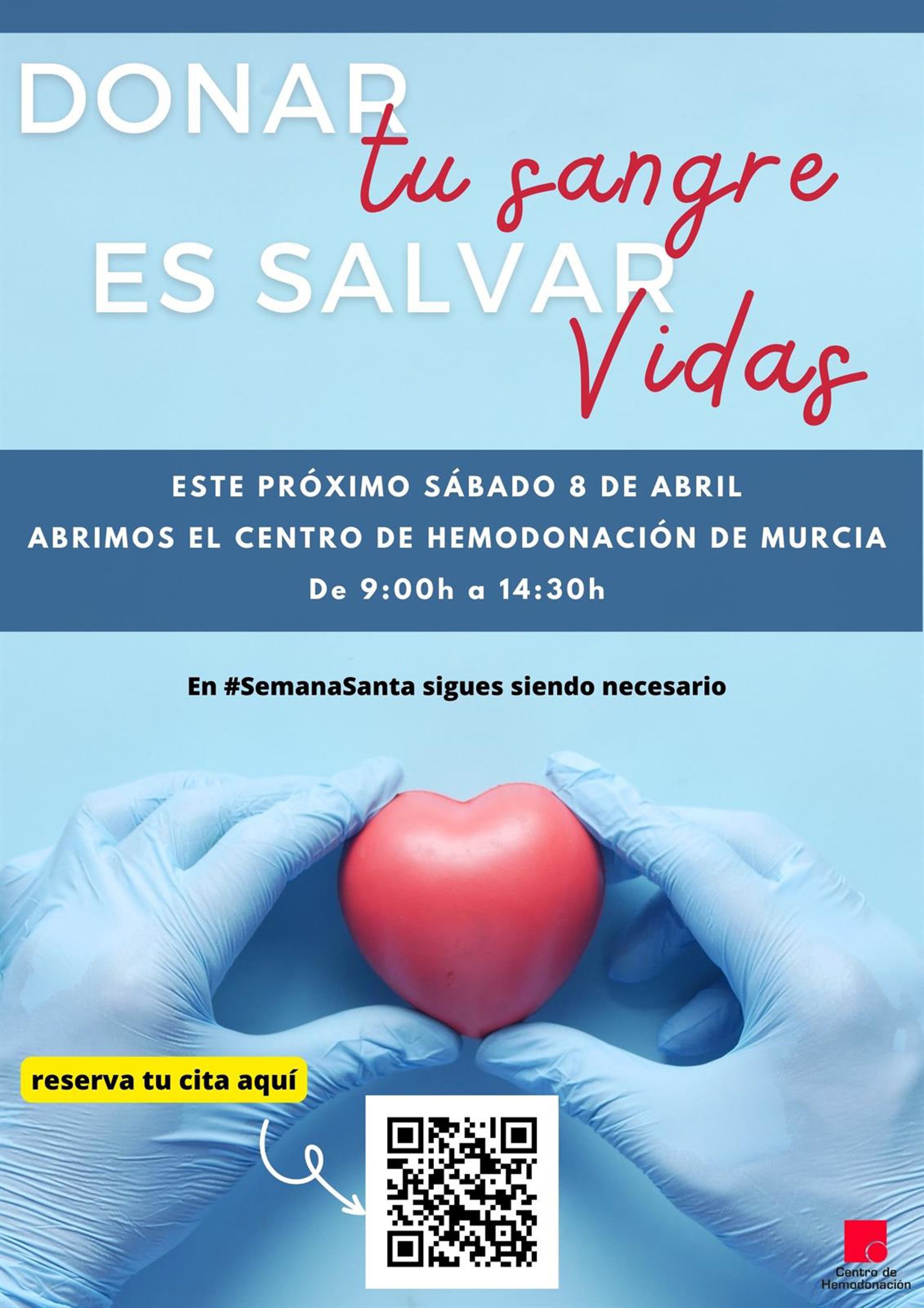 Con el objetivo de garantizar el suministro de componentes sanguíneos de los hospitales de la Región, durante Semana Santa y las Fiestas de Primavera, las unidades móviles del Centro Regional llevarán a cabo su actividad con carácter ordinario lunes, martes y miércoles (la localización y el horario están disponibles en 'https://www.murciasalud.es/web/centro-regional-de-hemodonaci...)'.