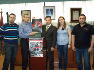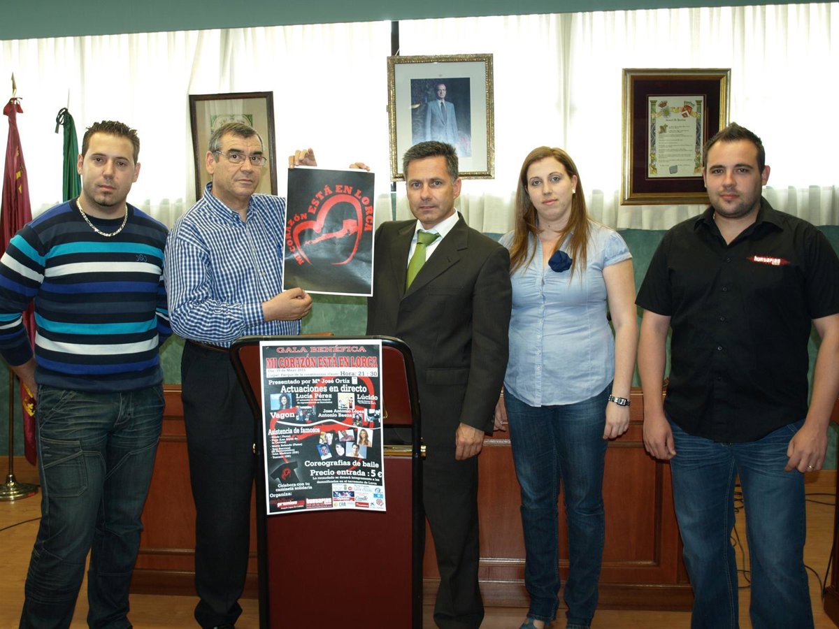 El alcalde de Ceutí, Manuel González, y el presidente de Cáritas Ceutí, Juan Francisco Gallego, junto a miembros de la corporación y de las empresas organizadoras de la convocatoria, 'Deejaimur' y 'Hurtaplas', han presentado en el Ayuntamiento las actuaciones que se desarrollarán durante la gala, entre ellas la de Lucía Pérez, representante de España en la última edición de 'Eurovisión'.