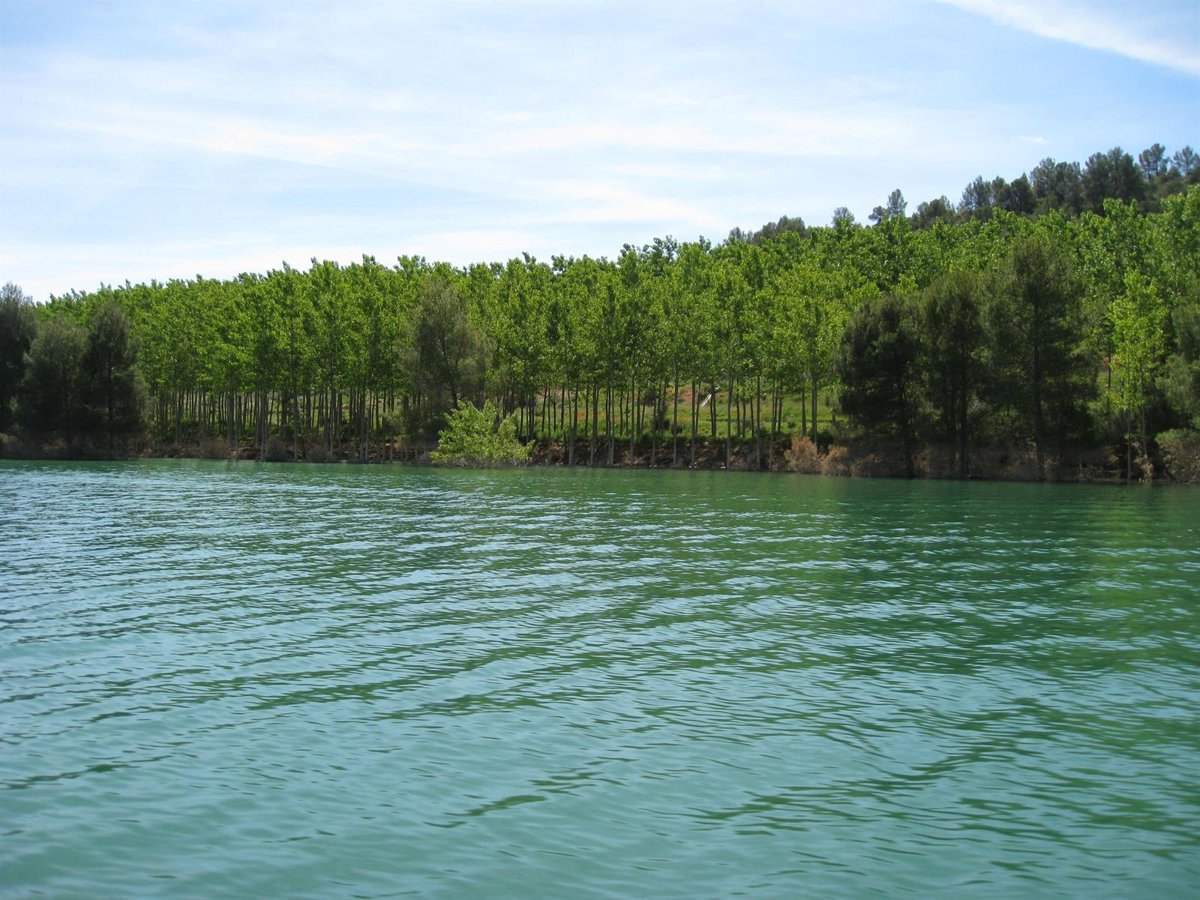 Fotografía de una zona repoblada con chopos en la ribera del embalse de la Fuensanta. - CHS