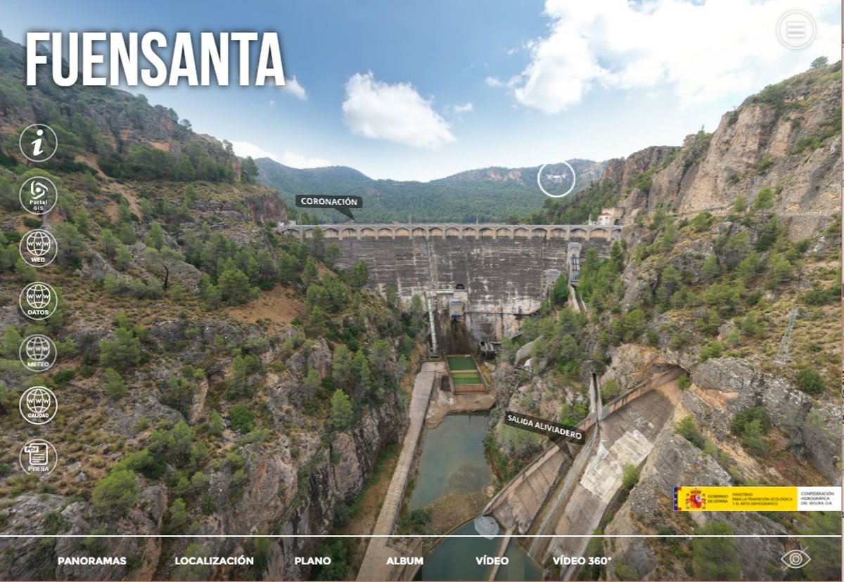 Estas visitas incluyen imágenes esféricas aéreas y terrestres además de vídeos aéreos y vistas a 360 que permiten acercarse desde casa a las principales infraestructuras hidráulicas de la cuenca.