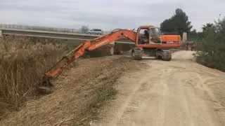 Finalmente, en Cuevas de Almanzora se está limpiando la rambla de Guazamara, mediante el desbroce de caña y poda de taray.