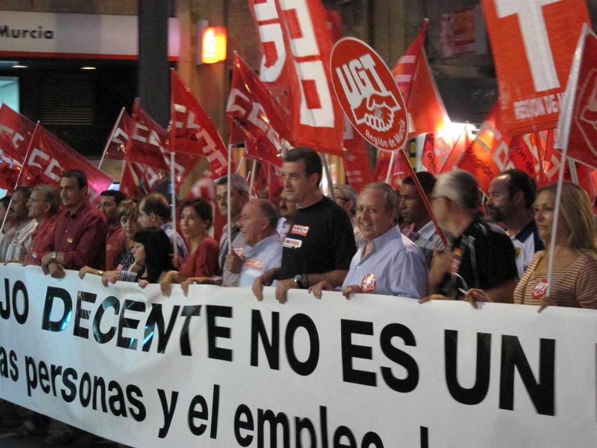 Y es que, han subrayado los secretarios generales de CCOO y UGT, Daniel Bueno y Antonio Jiménez, respectivamente, en la Región de Murcia hay 133.000 personas en paro y un aumento considerable de los contratos temporales. Por lo que, han indicado, el trabajo "es un derecho absolutamente necesario para remontar esta situación de crisis".