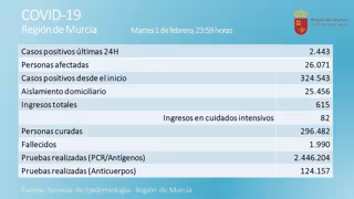 La cifra de contagios baja en la Región a 2.443 en una jornada en la que aumentan a 12 los fallecidos - CARM