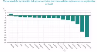 Gráfico de variación de la facturación del sector Servicios por comunidades autónomas en septiembre de 2020 - INE