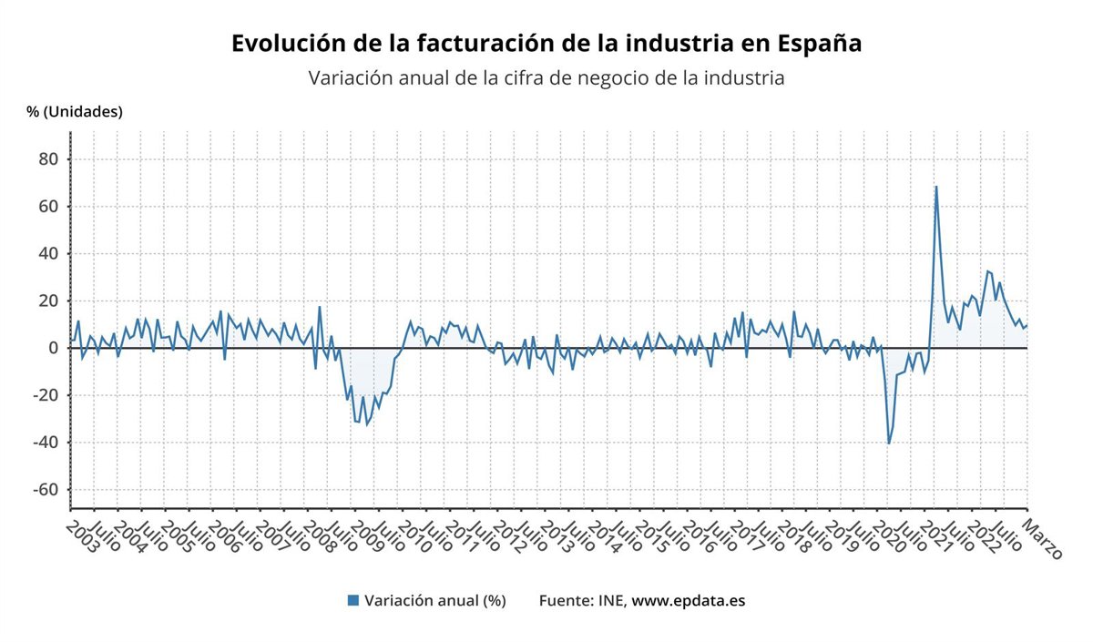Variación anual de la cifra de negocio de la industria - INE, WWW.EPDATA.ES