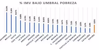 Por comunidad autónomas, la cobertura del ingreso mínimo vital continúa siendo desigual en el territorio nacional. Así, hay algunas que tienen una cobertura menor al 6%, como Cataluña (5,6%) o Baleares (5,7%) y otras que llegan a una cobertura del 24%, como es el caso de Navarra, comunidad que ha realizado la pasarela desde su sistema de Rentas Mínimas.