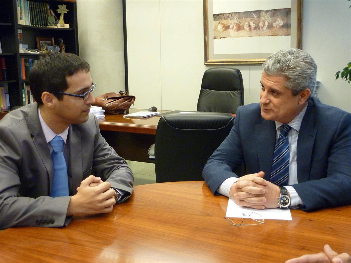 El presidente de la Confederación Regional de Organizaciones Empresariales de la Región de Murcia (Croem), Miguel del Toro; y el decano del Colegio de Ciencias Políticas y Sociología, Javier Sierra, mantuvieron hoy una reunión en la que abordaron la posible colaboración de ambas organizaciones en la eliminación de trabas administrativas para el dinamismo empresarial y el fomento de la cultura emprendedora.