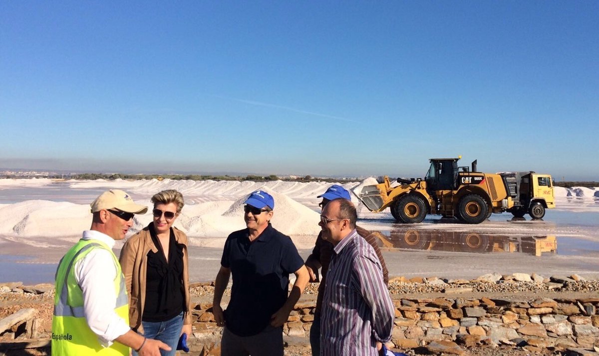 La directora general del Medio Natural, Consuelo Rosauro, ha asistido esta mañana al inicio de los trabajos de cosecha de la sal que se realizan en el Parque Regional de las Salinas y Arenales de San Pedro y que se estima que este año llegue a cerca de 100.000 toneladas.