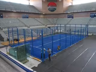 El Palacio de Deportes del Ayuntamiento de Murcia se prepara para acoger la competición de las principales figuras de pádel del panorama internacional. Ya ha comenzado el montaje de la pista de pádel en la que se celebrarán los cuartos de final y la final del I Internacional de Pádel Ciudad de Murcia. El Palacio de Deportes tendrá capacidad para 3.000 espectadores.