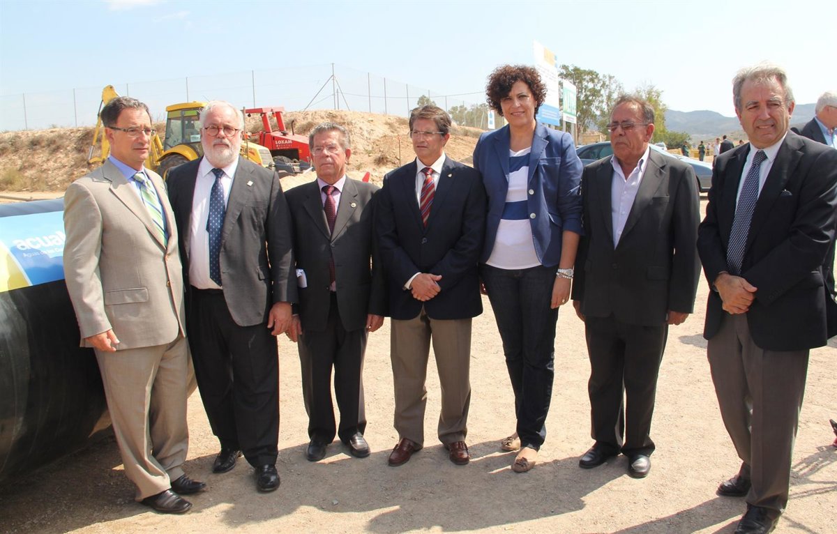 El ministro de Agricultura, Alimentación y Medio Ambiente, Miguel Arias Cañete, ha participado este martes junto al delegado del Gobierno, Joaquín Bascuñana, el consejero de Agricultura y Agua, Antonio Cerdá, la alcaldesa de Puerto Lumbreras, Mª Ángeles Túnez, el alcalde de Lorca, Francisco Jódar, y los presidentes de las Comunidades de Regantes de Puerto Lumbreras y Lorca, en el comienzo de las obras de nuevas infraestructuras de regadío para la distribución de agua hasta el valle del Alto Guadalentín.