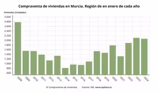 A pesar de la caída, las 2.066 compraventas de viviendas suponen el cuarto mejor dato de este índice en un mes de enero en la Región de toda la serie histórica.