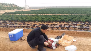 Un investigador del proyecto Diverfarming durante los ensayos en un cultivo de kale - UPCT