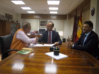 El consejero de Universidades, Empresa e Investigación, Salvador Marín, y el ministro de Agricultura del Estado de Chhattisgarh de India, Chandershekhar Sahu, firmaron hoy una carta de intenciones y cooperación para favorecer e intensificar el intercambio de conocimiento y las relaciones comerciales sobre la industria que presta tecnología y servicio al sector de la alimentación.