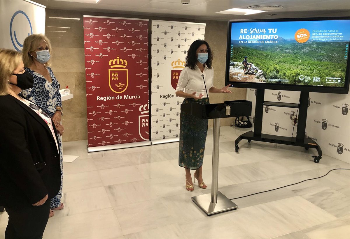 La consejera de Turismo, Juventud y Deportes, Cristina Sánchez, acompañada por la presidenta de Hostetur, Soledad Díaz, ha presentado este miércoles los detalles de la campaña, que entrará en vigor de cara al puente festivo del 12 de octubre y que irá sumando nuevos alojamientos a medida que éstos soliciten su adhesión.