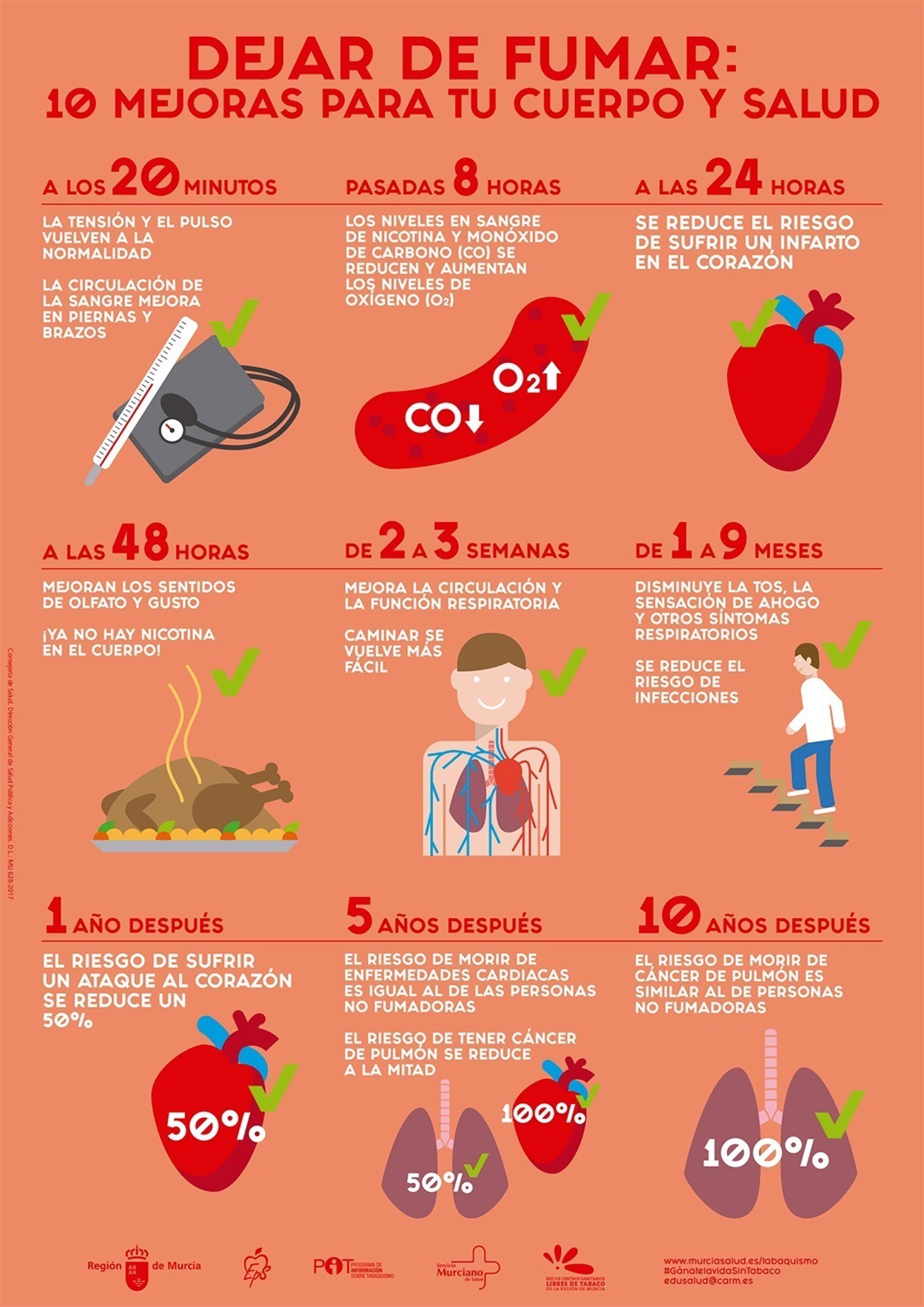 La Consejería de Salud ofrece recursos para que los cerca de 340.000 murcianos que fuman dejen el tabaco, que pueden acudir tanto a Atención Primaria como a las unidades especializadas con las que cuentan los hospitales adscritos a la Red de Centros Sanitarios Libres de Tabaco. Hay que tener en cuenta que en los últimos años han dejado de fumar en la Región unas 8.700 personas con ayuda de profesionales del Servicio Murciano de Salud.
