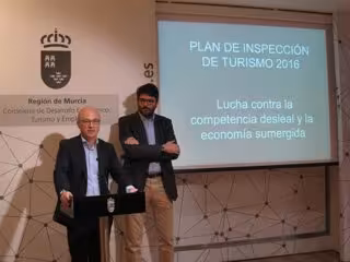 El consejero de Desarrollo Económico, Turismo y Empleo, Juan Hernández, ha presentado este viernes el Plan de Inspección de Turismo de la Región de Murcia 2016, enfocado a luchar contra el turismo clandestino y la competencia desleal.