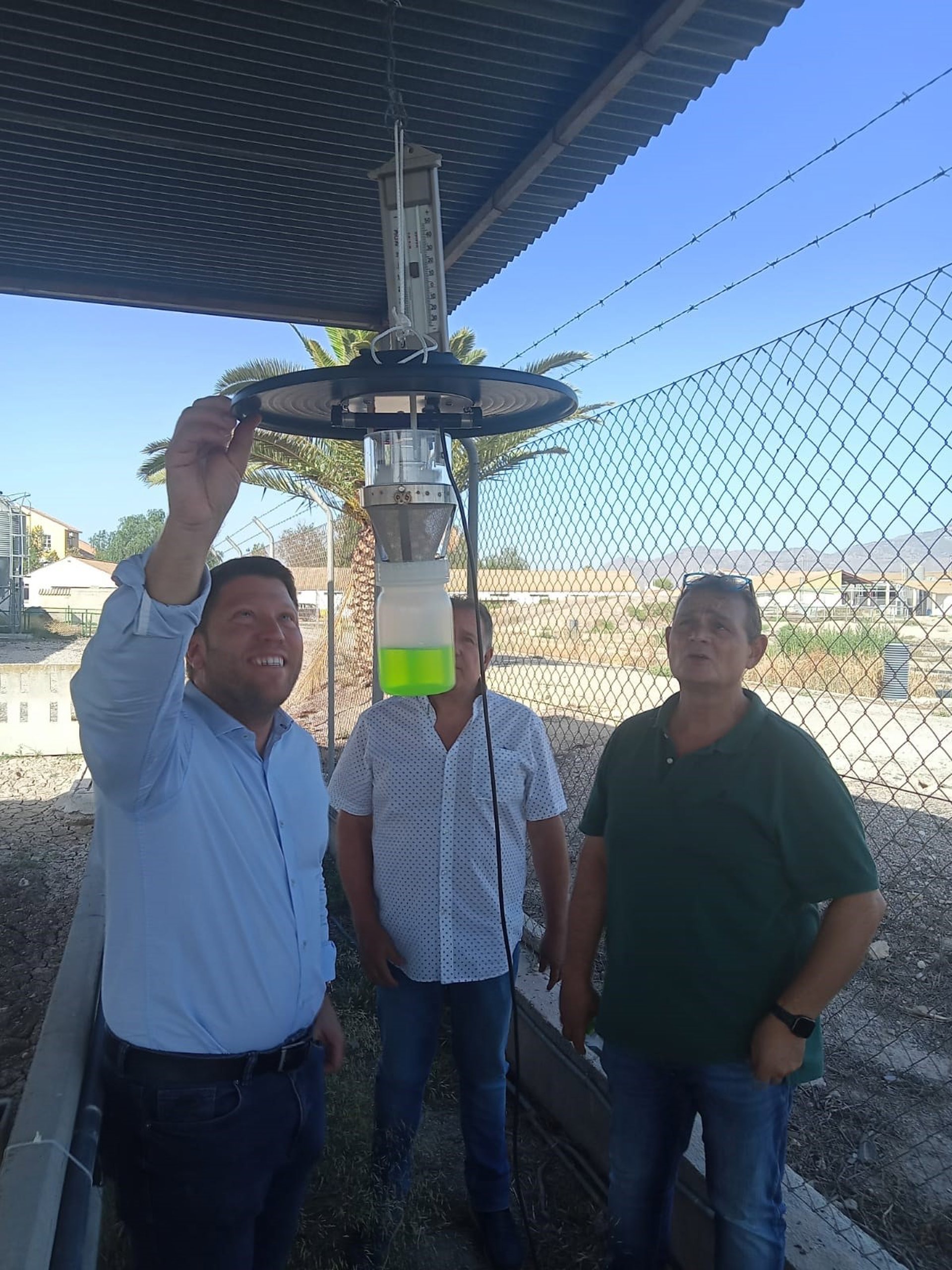El director general de Producción Agrícola, Ganadera y Pesquera, Juan Pedro Vera, con la trampa de insectos para el control de la lengua azul que se ha instalado en el CIFEA de Lorca - CARM