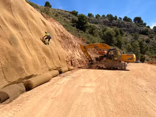 Los trabajos consisten en la protección y estabilización en los taludes para evitar posibles arrastres y desprendimientos que frecuentemente se producen durante los episodios de lluvias torrenciales.