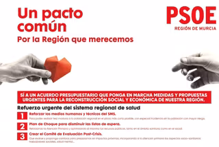 El secretario general del Partido Socialista de la Región de Murcia, Diego Conesa, ha seguido ofreciendo el apoyo de su partido al Gobierno regional para aumentar el presupuesto del material sanitario y reforzar así la sanidad.