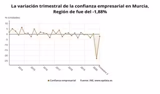 La confianza empresarial en la Región de Murcia ha descendido un 1,9 por ciento en el tercer trimestre de 2020, el sexto mayor descenso por comunidades, frente a la media nacional que se mantuvo sin variación (0 por ciento), según el Indicador de Confianza Empresarial Armonizado (ICEA), cuya publicación corresponde al Instituto Nacional de Estadística (INE).