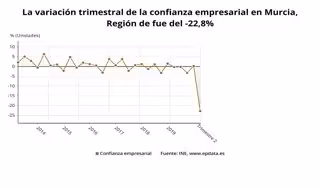 La confianza empresarial en la Región de Murcia ha descendido un 22,8 por ciento en el segundo trimestre de 2020, el menor descenso por comunidades, frente a la caída del 26,9% de la media nacional, según el Indicador de Confianza Empresarial Armonizado (ICEA), cuya publicación corresponde al Instituto Nacional de Estadística (INE).