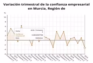 La confianza empresarial en la Región de Murcia ha bajado un 3,3 por ciento en el cuarto trimestre de 2018, el tercer mayor descenso por comunidades, frente a la caída del 1,7 por ciento de la media nacional, según el Indicador de Confianza Empresarial Armonizado (ICEA), cuya publicación corresponde al Instituto Nacional de Estadística (INE).