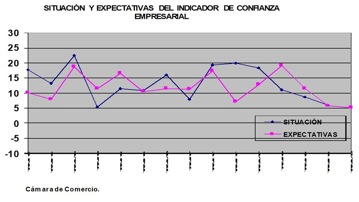 El Índice de Confianza Empresarial (ICE) que elabora la Cámara de Comercio de Murcia revela que la confianza de los empresarios en la evolución de la economía murciana continúa inmersa en una tendencia descendente que se inició hace nueve meses, aunque mantenga su signo positivo, llevando este indicador a niveles de 2014. En este sentido, dicho índice sitúa su saldo en el 5,6 por ciento, lo que supone un recorte de 1,6 puntos respecto al trimestre anterior.