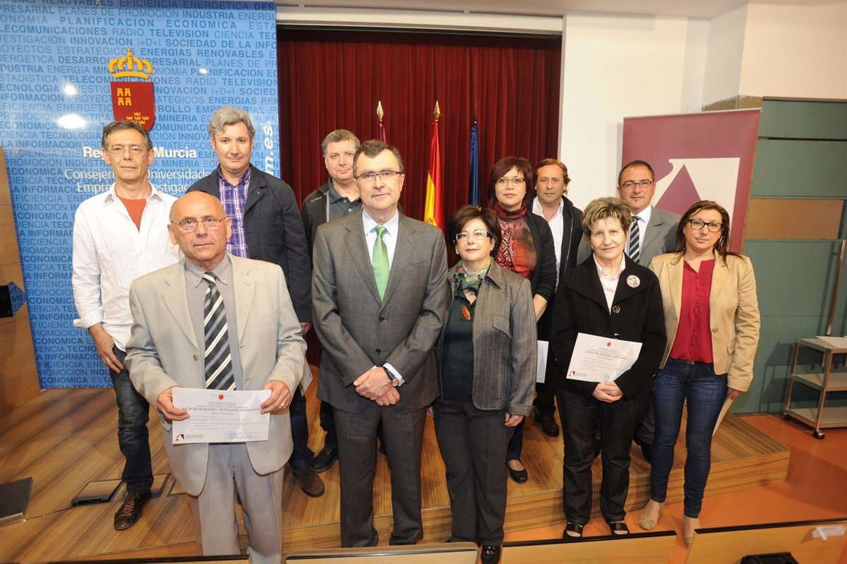 Un total de ocho artesanos de la Región con amplia experiencia en los oficios de vidriero, panadero, belenista tradicional de barro, pastelero, alfarero ceramista y metalistero artístico han recibido este miércoles de manos del consejero de Universidades, Empresa e Investigación, José Ballesta, las cartas que los acreditan como 'Maestro Artesano'. Además, se ha entregado la distinción de 'Maestro Artesano Honorífico' al alfombrista, Francisco Boluda, asentado en Mula.