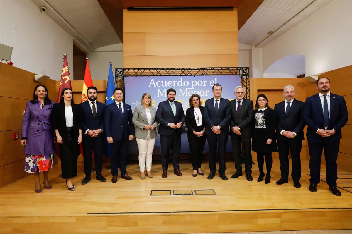 Foto de familia de los firmantes del protocolo de colaboración sobre la creación y regulación de la Comisión Interadministrativa del Mar Menor - EDU BOTELLA/EUROPA PRESS