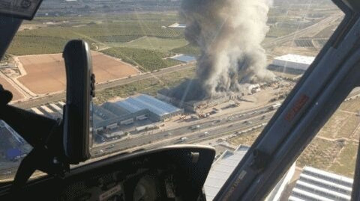 El acceso a esta zona industrial desde la autovía A-7 tuvo que ser cortado al tráfico este jueves. Se trata de un almacén con gran cantidad de productos que se venden en tiendas de todo a cien como artículos de perfumería, droguería, higiene, belleza, cosmética y farmacia que, por causas que se desconocen, ha comenzado a arder.