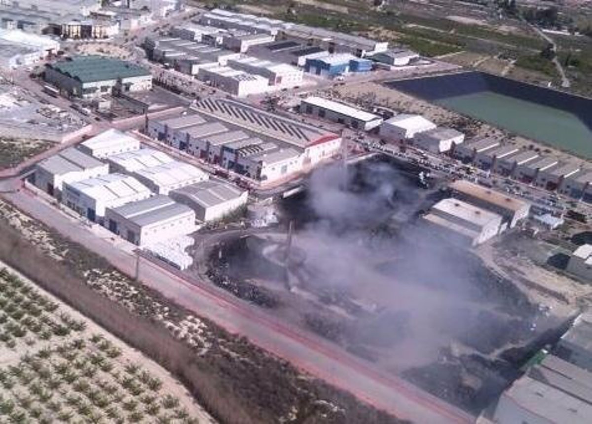 Un total de 12 bomberos del Consorcio de Extinción de Incendios y Salvamento de la Región de Murcia (CEIS) procedentes de los parques de Lorca, Jumilla, Caravaca de la Cruz, Alcantarilla y Abanilla permanecen este lunes trabajando en la extinción del incendio en una planta de reciclaje de neumáticos en el polígono industrial Los Torraos, de Ceutí.