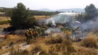 Al lugar han acudido el helicóptero y brigada forestal helitransportada con base en la Sierra de la Pila, agentes medioambientales y brigada forestal de Blanca, así como Bomberos del CEIS con base en Cieza
