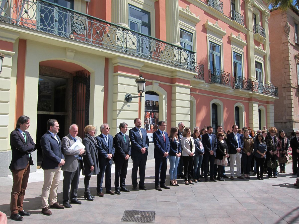 El alcalde de Murcia, José Ballesta, y miembros de la Corporación municipal han guardado un minuto de silencio en recuerdo de la mujer fallecida este miércoles a manos de su pareja sentimental, detenido por la Policía Nacional, y ambos de nacionalidad colombiana.