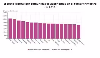 El coste laboral por comunidades autónomas en el tercer trimestre de 2019 - EUROPA PRESS