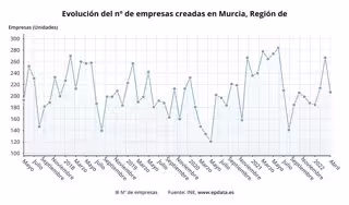 Evolución del número de empresas creadas en la Región de Murcia - EPDATA