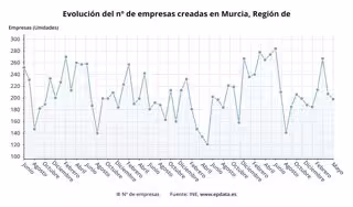 Evolución del número de empresas creadas en la Región de Murcia - EP DATA