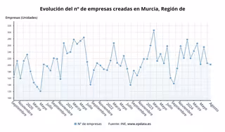 Evolución del número de empresas creadas en la Región de Murcia - EPDATA