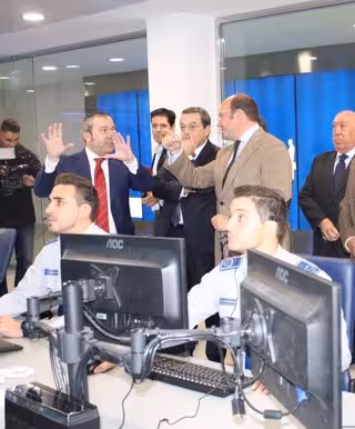 Sus nuevas instalaciones, donde han invertido más de dos millones de euros, incorporan la "central de recepción de llamadas y emergencias más importante del Mediterráneo", dijo Pedro Antonio Sánchez. En total son más de 2.500 metros cuadrados en las que trabaja una media de 50 personas al día.