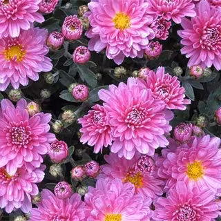 El azul, significa una relación y superación rápida y el morado, simboliza una relación intensa. Por el contrario, el crisantemo rosa o naranja representa el amor frágil o el amor dulce.