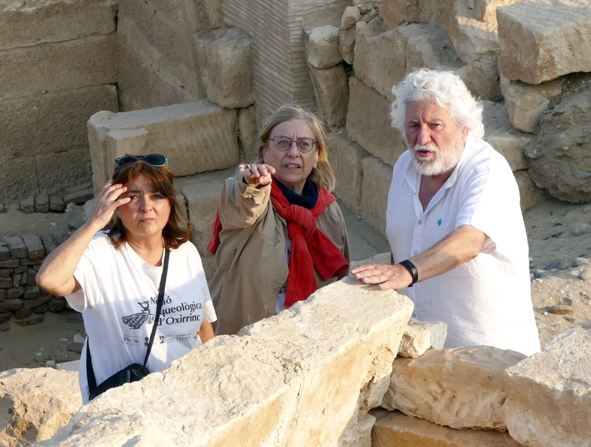 Cristóbal Gabarrón en la Misión Arqueológica Española en Oxirrinco con las codirectoras Esther Pons y Maite Escort - MURCIA CULTURAL