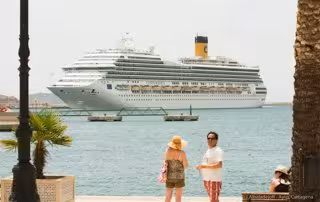 También dispone de un teatro de tres pisos, una discoteca, centro comercial, piscina infantil, casino, etcétera. El Costa Mágica pasará el día en Cartagena y será a las 20.00 horas cuando deje atrás la ciudad para seguir hacia su destino.